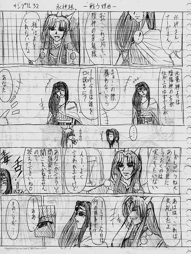 続きます。水神様&NewVer.陰神様の初お披露目となったのがこのサンプル。 そして数ある現在の絵の中で最も水神様のお庭の構造がわかるサンプル(笑) 陰神様の「は?」が好きです個人的に^^;