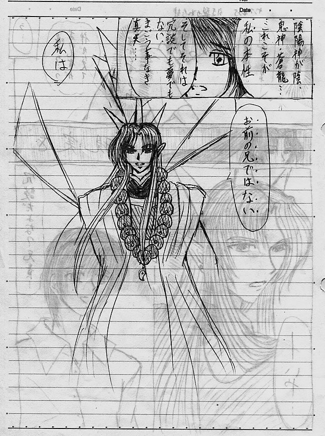 見づらいのはご容赦。筆圧濃くなってきたにもかかわらず 「白黒書類」モードで取り込んだ結果です。 1ページ目陰神様がまた好(殴)