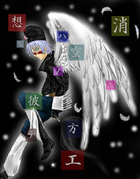 | 浪老子 | 「・・・うん、そう。 ホントはね、死神も後ろに描いてあげる予定だったんよ。うっすらと。 じゃなきゃ『想ヒ』が『消エル』ってどーゆー意味?ってなるから。」 |